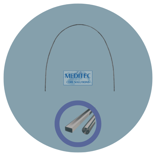 Gli archi in Ni-ti Meditec assicurano ottimi risultati, forniscono una forza costante e continua abbinata ad una deformazione quasi nulla, finitura Supersmooth per diminuire in maniera esponenziale il frizionamento nello slot.